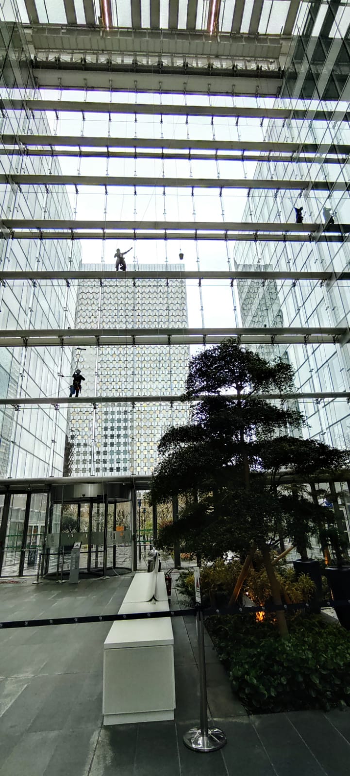 MSN, c'est une équipe de cordistes et de nettoyeurs de vitres équipés de nacelles ou d'échafaudages pour accéder aux surfaces vitrées les plus inaccessibles.